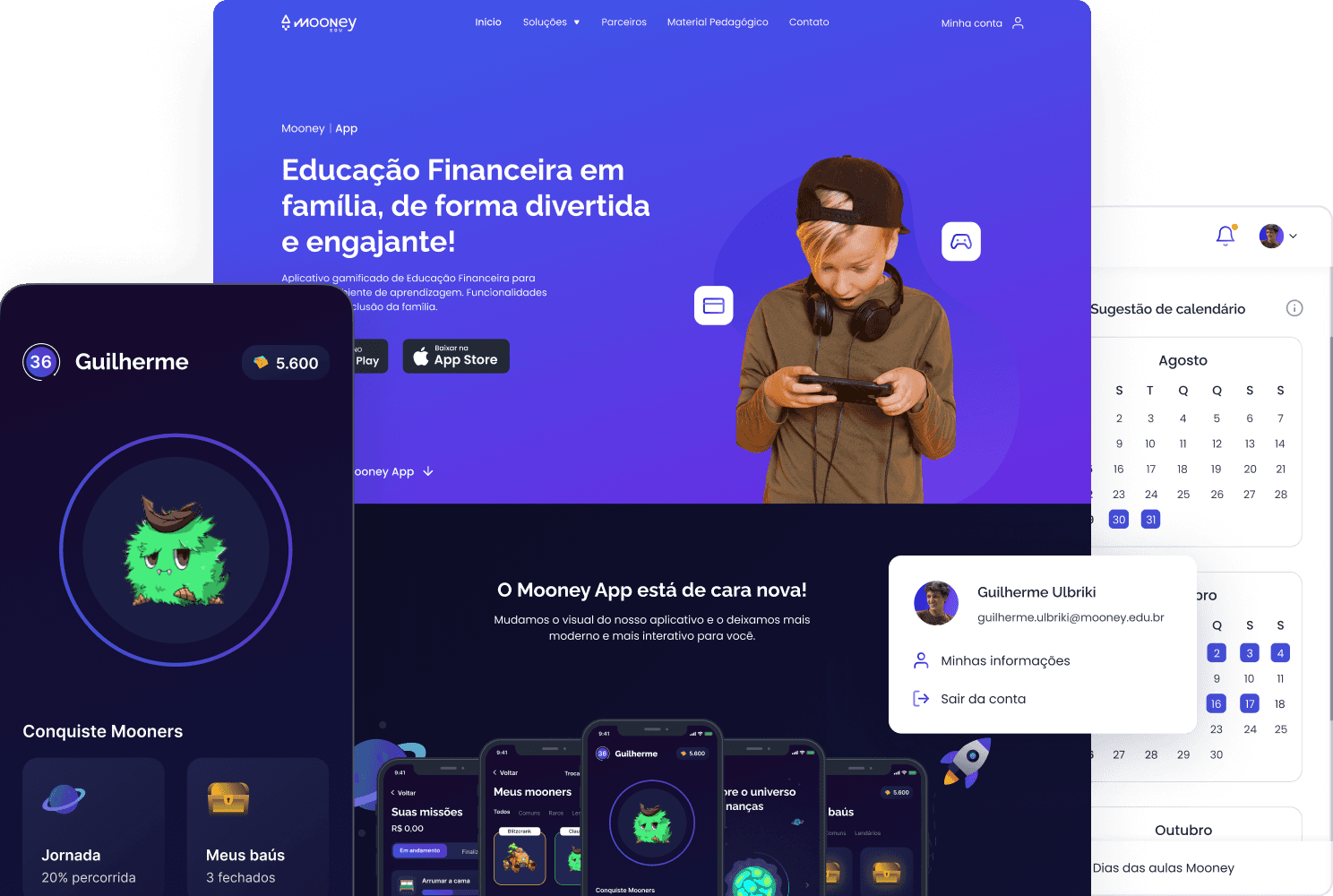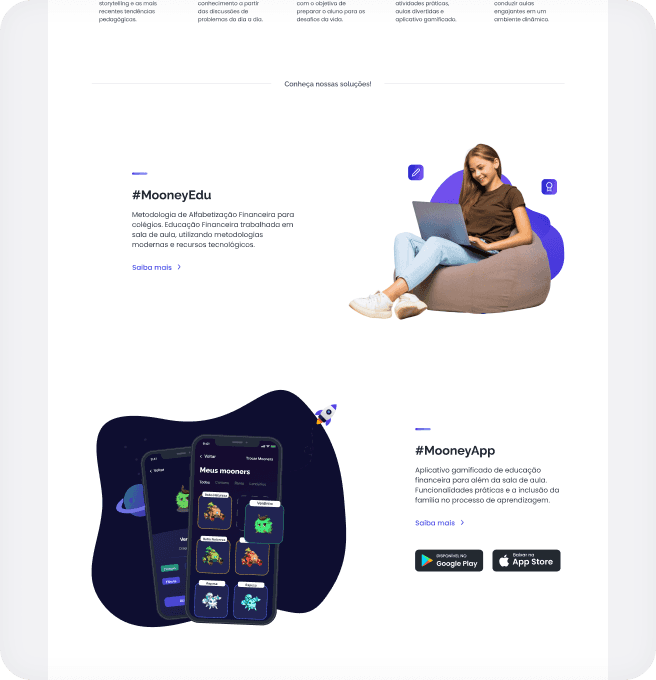Através dos produtos da Mooney, os professores conseguem acessar o conteúdo das aulas para passar para os seus alunos, que por sua vez, contam com uma plataforma gamificada para realizar exercícios e outras atividades.
