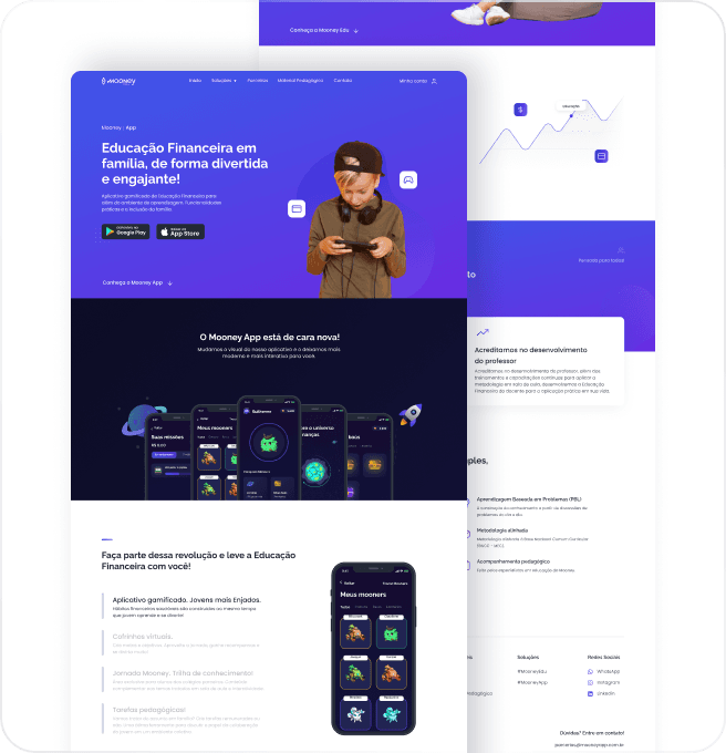 Mooney é uma startup de educação financeira com parceria com centenas de colégios pelo Brasil, onde fornece conteúdos sobre o mundo financeiro para alunos do ensino fundamental ao médio.